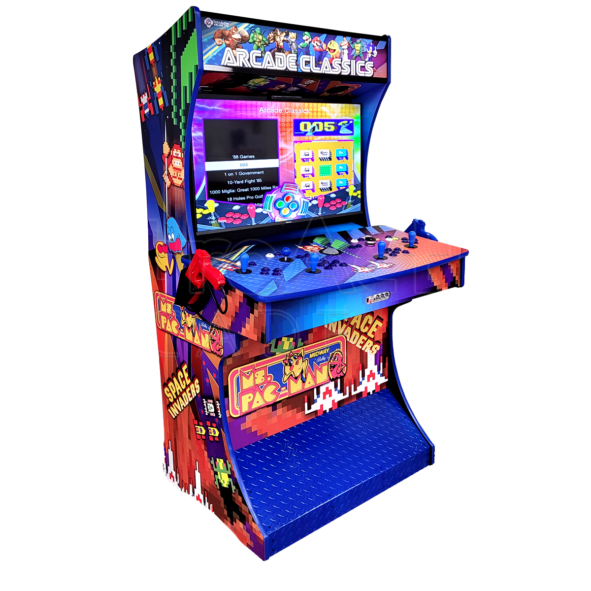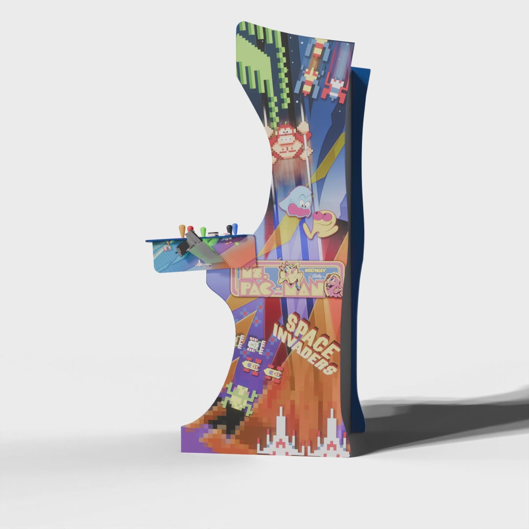 Crafted from sturdy 3/4" melamine, this beauty fits through doors wider than 32", ensuring it joins your gaming lair with ease. With customizable trims, joystick colors, and optional upgrades like a dazzling LED light kit, adventure awaits at every turn.
